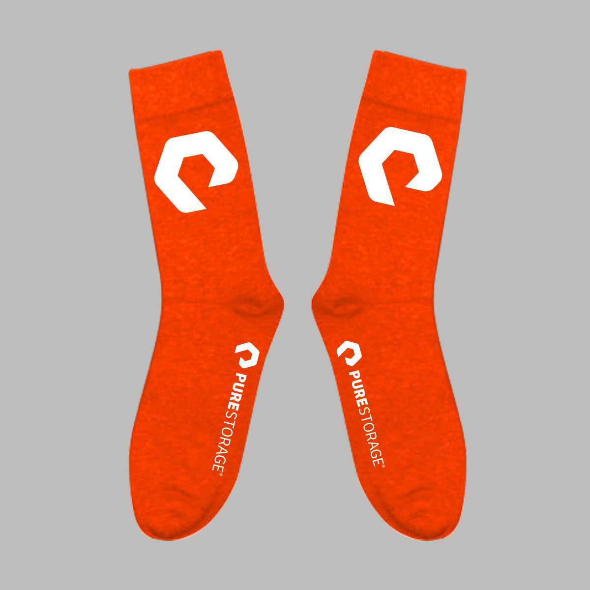 Now, you really can rock Pure Storage® pride from your head to your toes. These crew socks are made from full, comfy cotton, so they'll feel as amazing as they look.