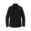 A sleek, water-resistant women's soft shell designed for the daily commute, offering warmth, comfort, and enhanced visibility. Features spandex for easy movement, reflective details, zippered side pockets with hidden mesh pocket, molded center front zipper, drop shoulder and drop tail hem, and grid microfleece lining for warmth.
