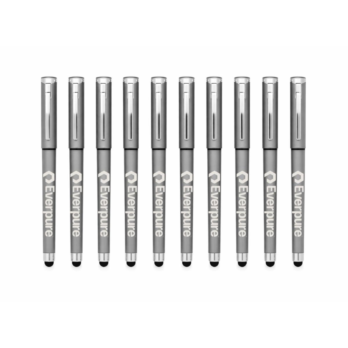 A premium, fine-point gel pen designed with a substantial feel, soft-touch rubberized barrel, and built-in stylus for everyday versatility.